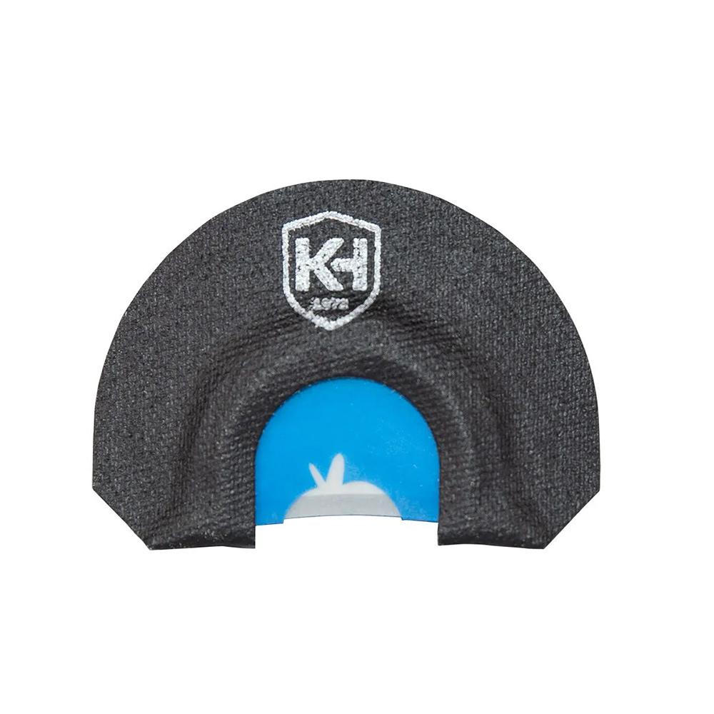 - Place the call in the roof of your mouth with the printed K&H logo on top and the reeds facing out.