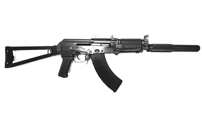 This is Riley Defense’s rifle version of the krink, chambered in 7.62x39mm and measures 36.25″ in overall length. This model comes with a side folding metal stock and a pinned faux can to make it a legal rifle.